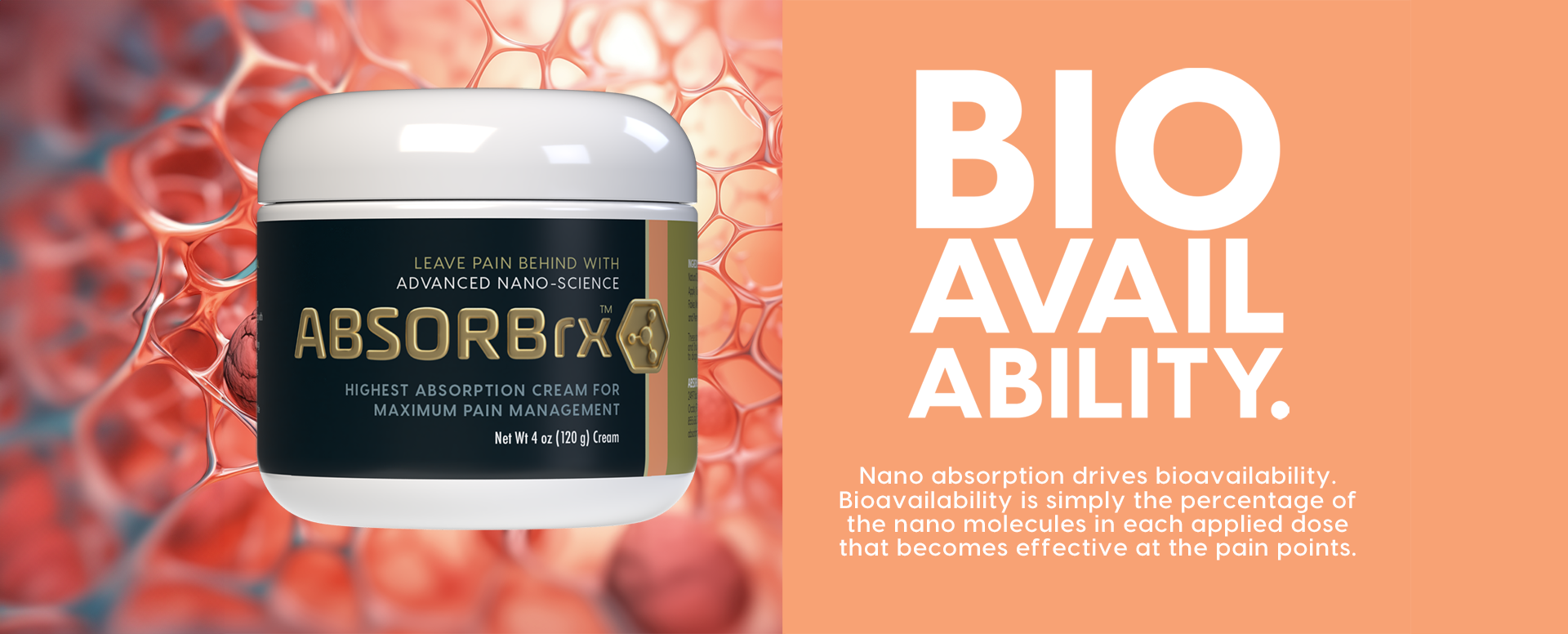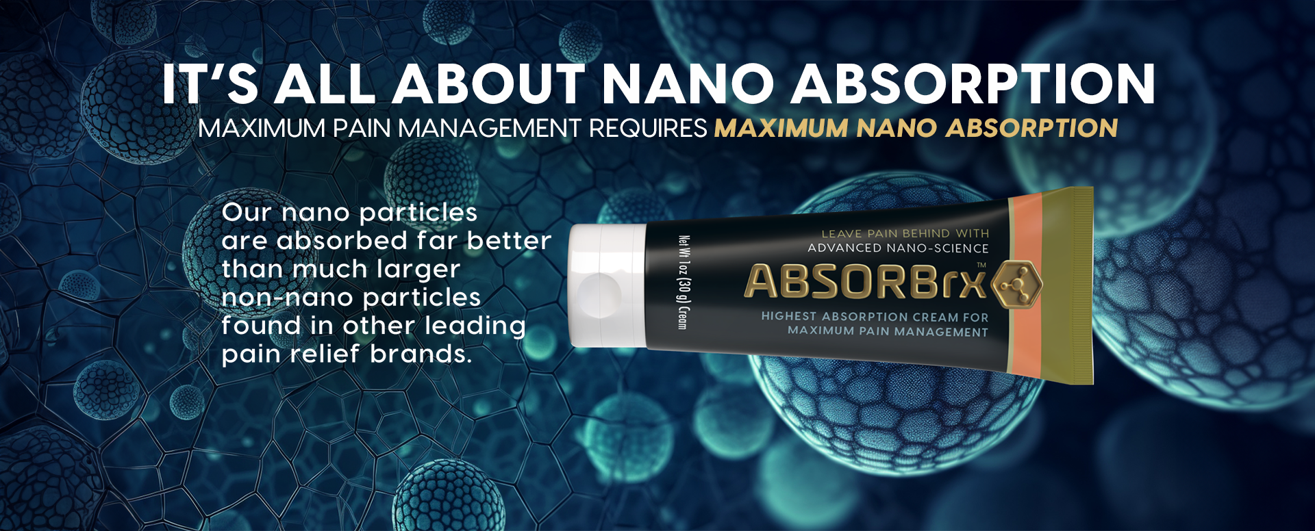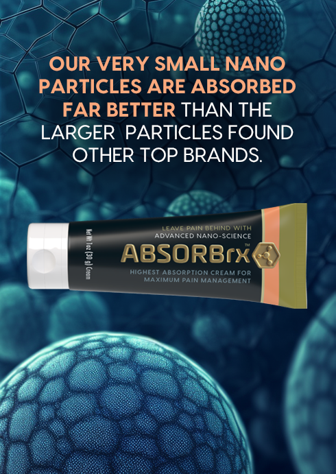 ABSORBrx™ HEMP nanoparticles easily pass around and through skin cells to penetrate the five (5) skin layers. A high percentage of our HEMP nanoparticles from each topical dose are absorbed, become bioavailable and provide effective pain relief at the pain points.