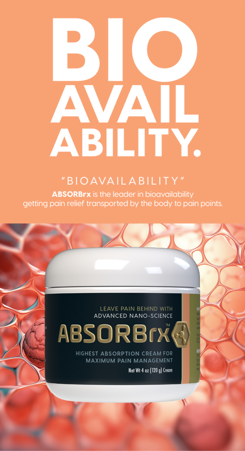 ABSORBrx™ cream combines safe, all natural, scientifically proven analgesic ingredients infused using advanced proprietary nano-HEMP science to penetrate deeply and quickly through the skin.